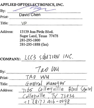 Applied Optoelectronics, Inc. 13139 Jess Pirtle Blvd.